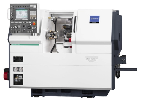 Simultaneous left/right processing with a main turret and compact sub-turret and overlap processing with double turning tools sharply cut the machining time.